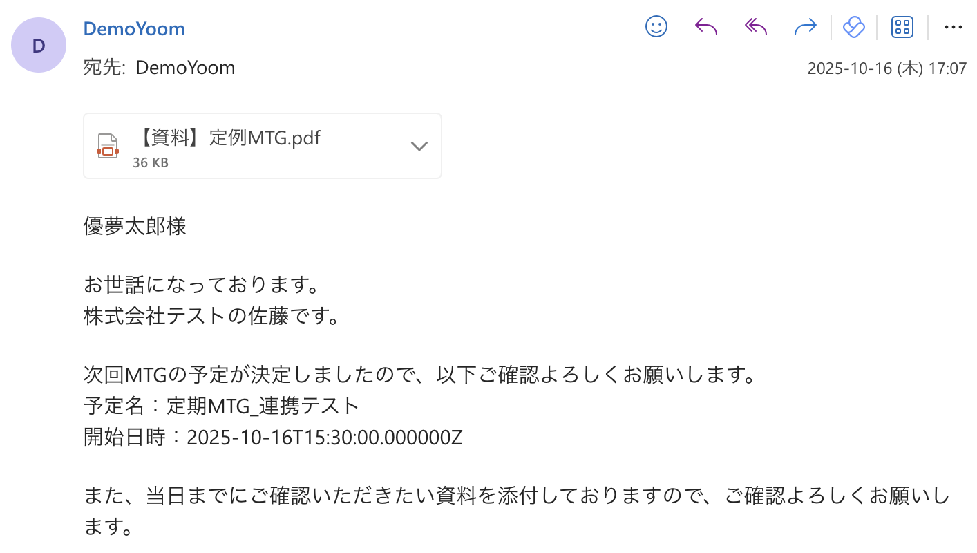A:Yoomを使うことで、メールの文章を柔軟にカスタマイズできたり、メールに資料を添付することも可能になります。