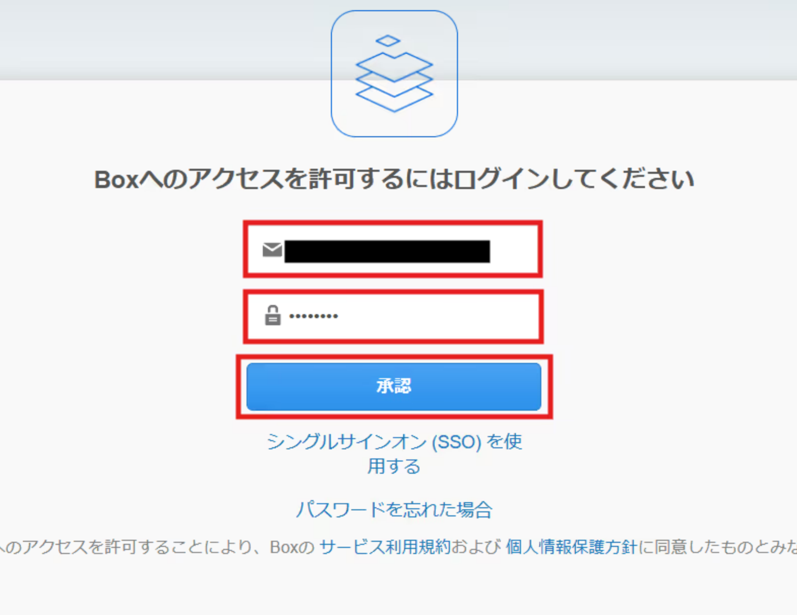アクセス権限の内容を確認し、「Boxへのアクセスを許可」をクリックしましょう。
