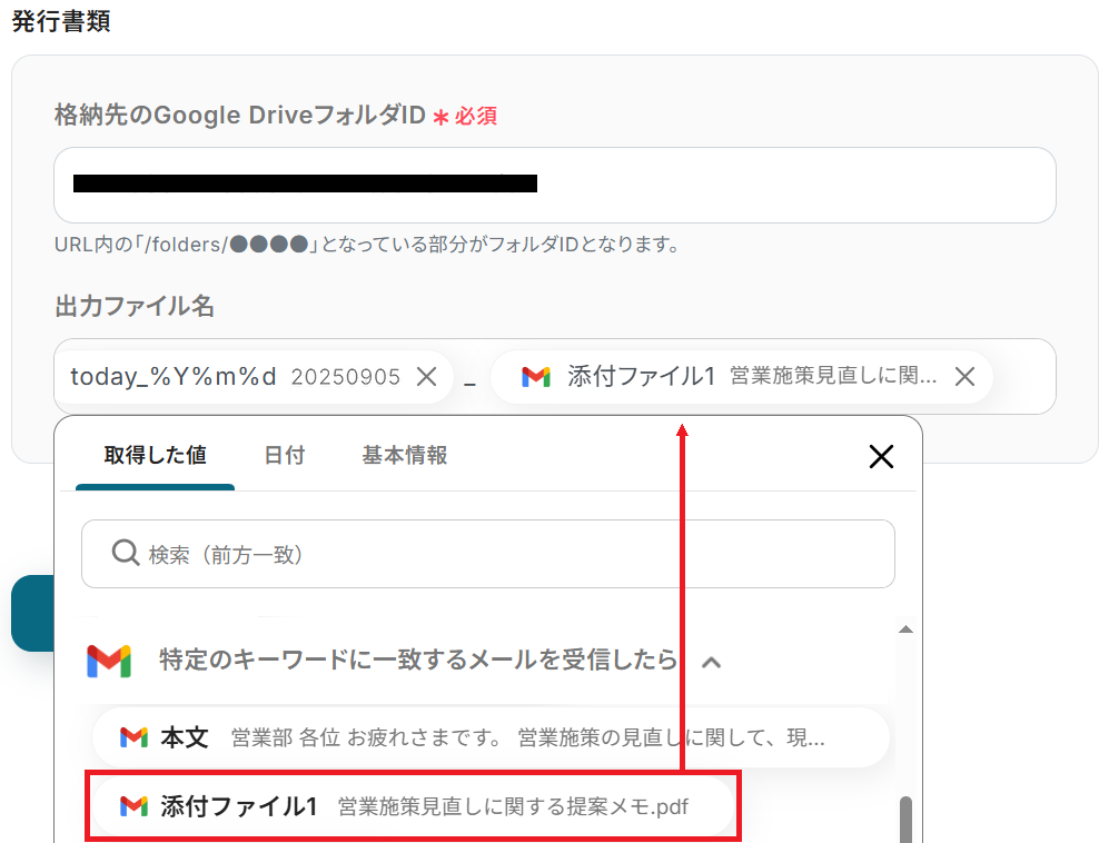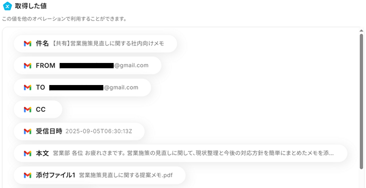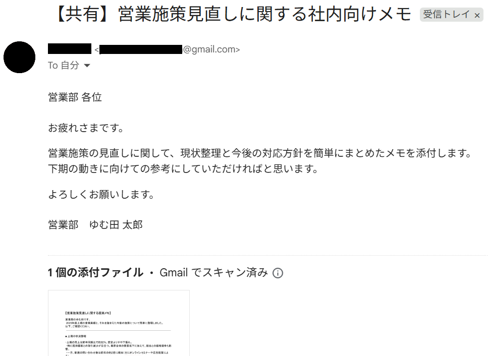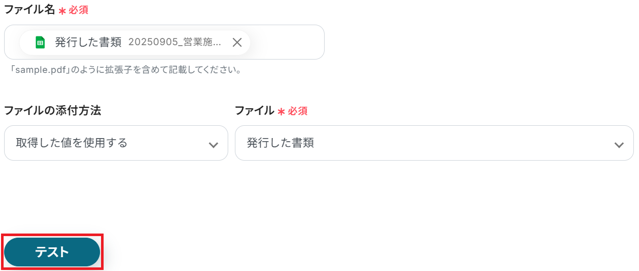 最後に、連携したGmailアドレスに先ほど決めたキーワードを含む添付ファイル付きメールを送信してください。