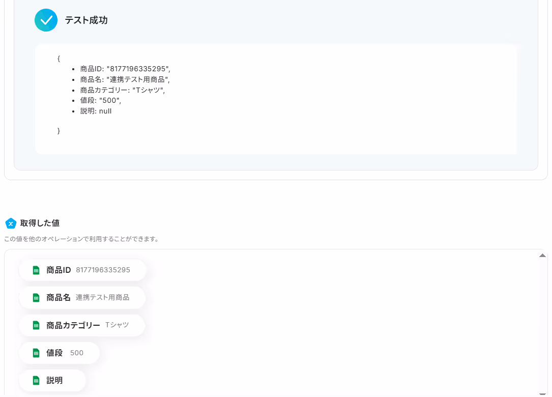 商品説明の欄にはChatGPTの「返答内容」の値が入っているのでそのままでOKです。