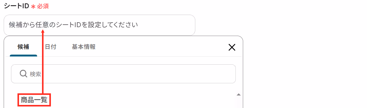 次に、連携するスプレッドシートIDを候補から選択してください。