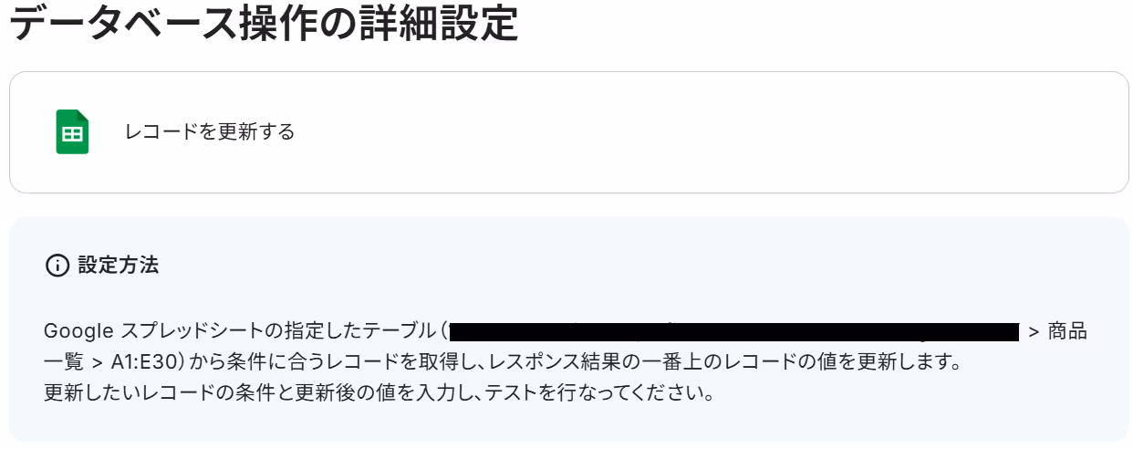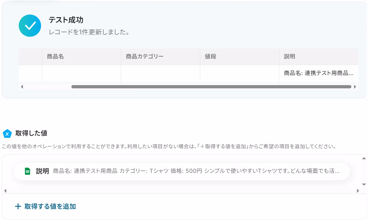 ステップ4で生成した商品説明文を、はじめに用意したシートに書き戻します。「レコードを更新する」をクリックしましょう。