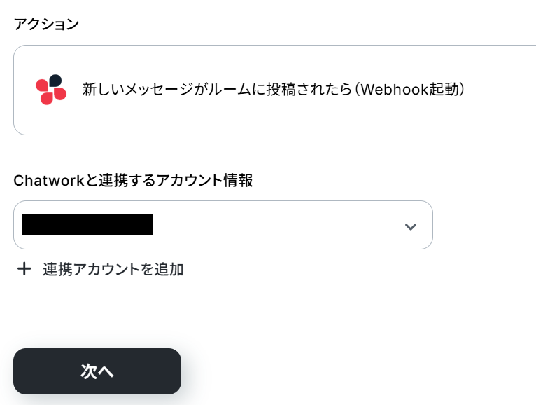 Chatworkと連携するアカウント情報を確認したら、次のページに進んでください。