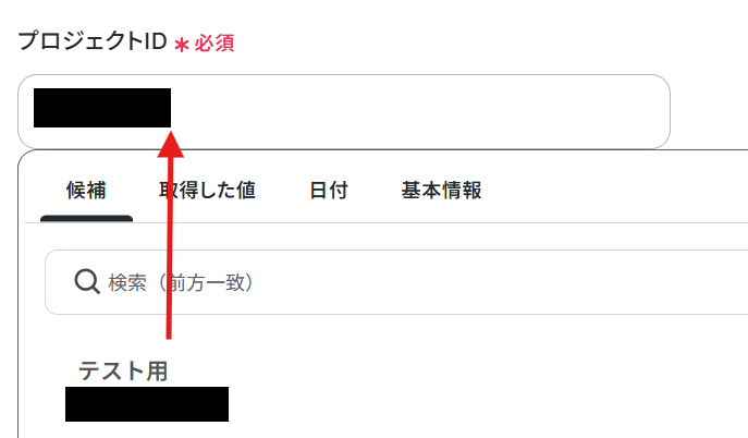 プロジェクトIDは、枠内をクリックし表示される候補から選択しましょう。