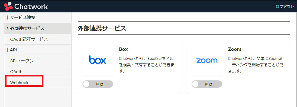 続いて、画面左にある「Webhook」をクリックします。