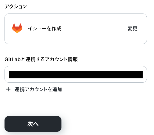 ステップ5:GitLabにイシューを作成する 最後に、Chatworkのメッセージ本文から抽出したテキストを用いてGitLabにイシューを自動で作成する設定を行います。
