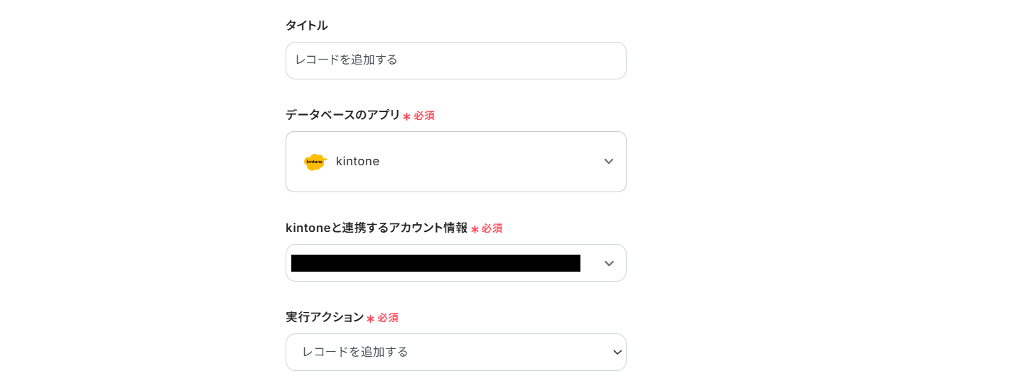 kintoneと連携するアカウント情報はプルダウンから選択します。