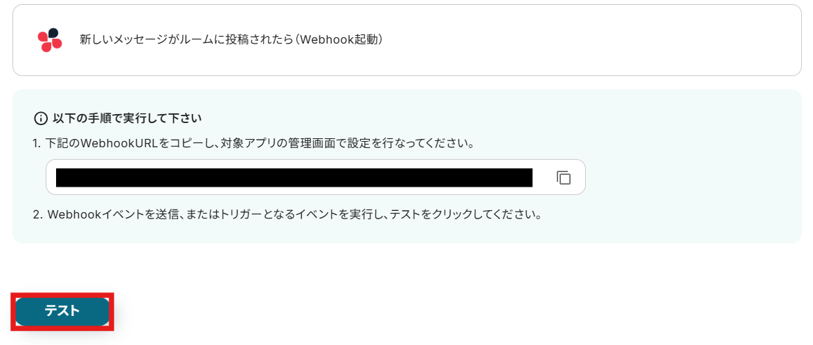 登録が終わったらYoomに戻り、テストをクリックしましょう。