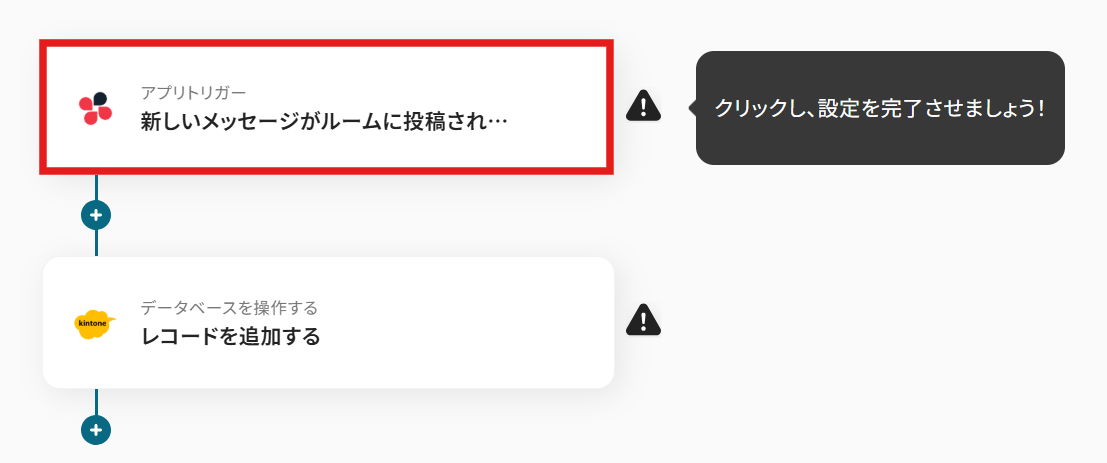 トリガーには「新しいメッセージがルームに投稿されたら(Webhook起動)」を選びましょう。