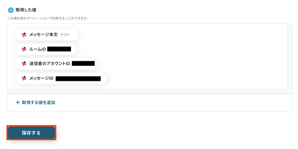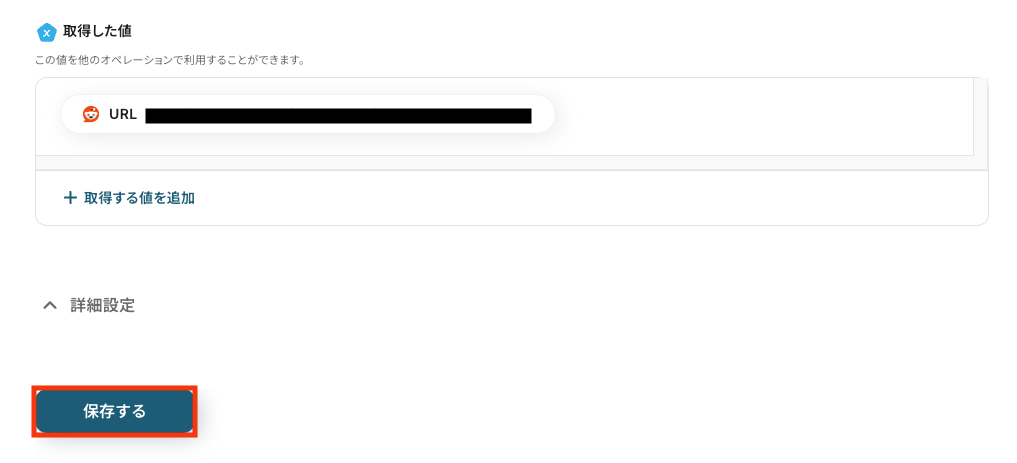 取得した値の内容を確認し、問題がなければ「保存する」をクリックします。