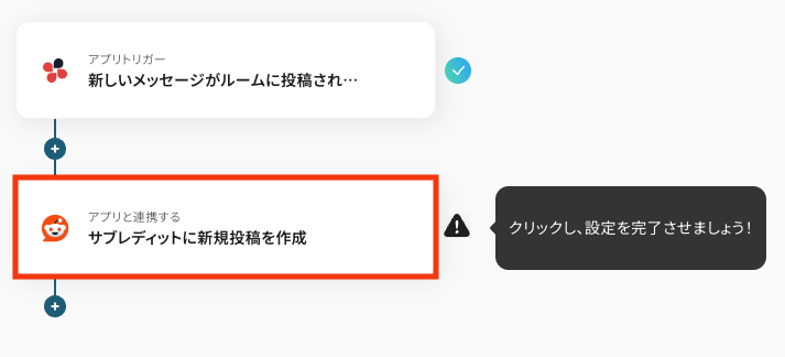 Chatworkでのメッセージ投稿を受けて、Redditに自動投稿する設定を行います。「サブレディットに新規投稿を作成」をクリックします。