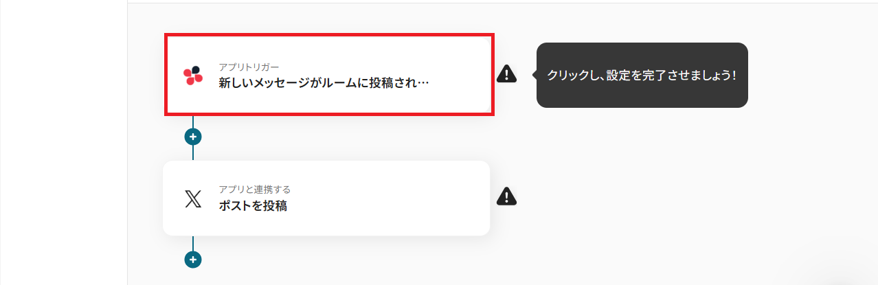- Chatworkのトリガー設定とX(Twitter)のアクション設定