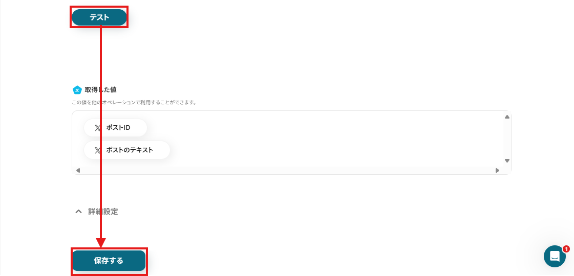 テストが成功すると、X(Twitter)に自動投稿されるので、確認し「保存する」をクリックしてください。