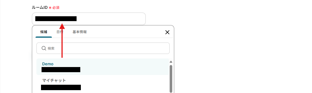 ルームIDは、枠内をクリックし表示される候補から使用したいルームを選択してください。