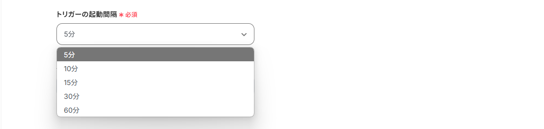 トリガーの起動タイミングは、5分、10分、15分、30分、60分から選択できます。