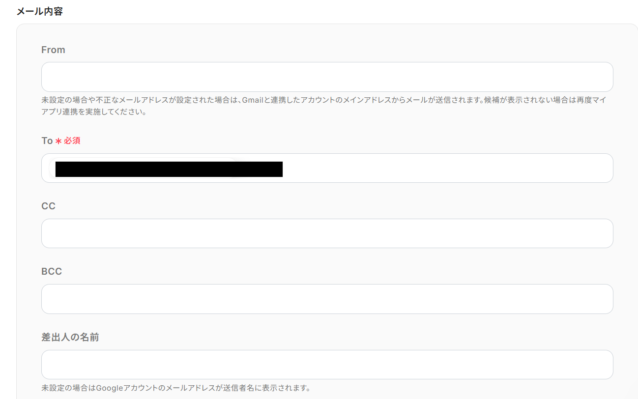 「From」については、連携したアカウントから送信したい場合は未入力で問題ありません。
