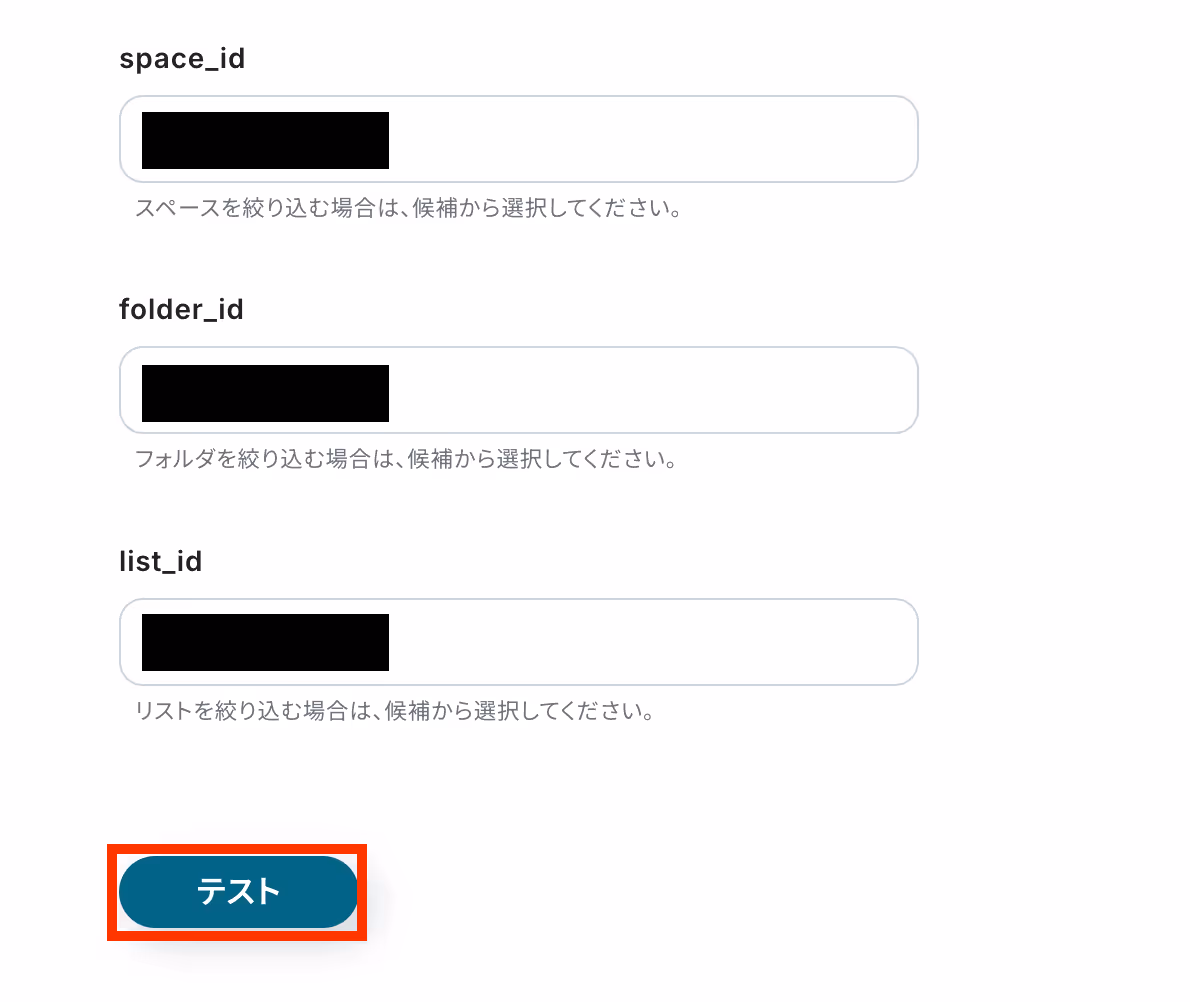 その他の設定も任意で行い、全ての設定ができたら赤枠のボタンでテストを実行しましょう!