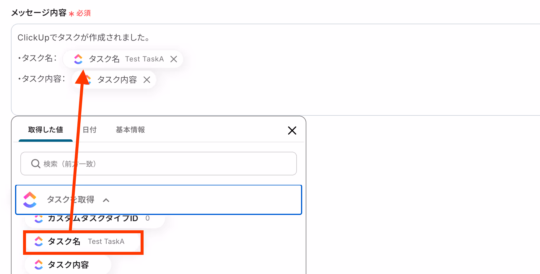 ClickUpから取得した値を利用して、Google Chatに通知を送る設定を行います。