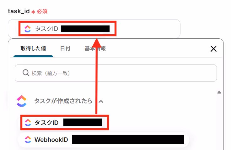 「task_id」は取得した値の中から選択しましょう。