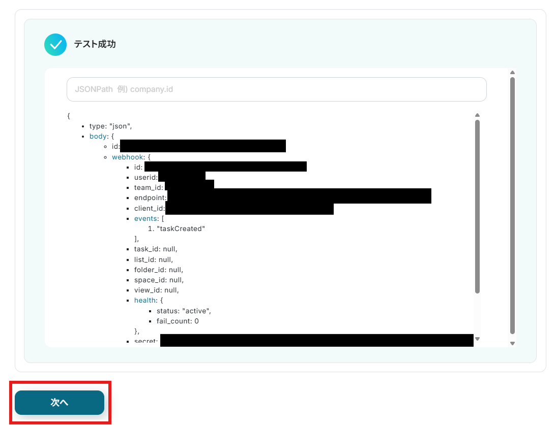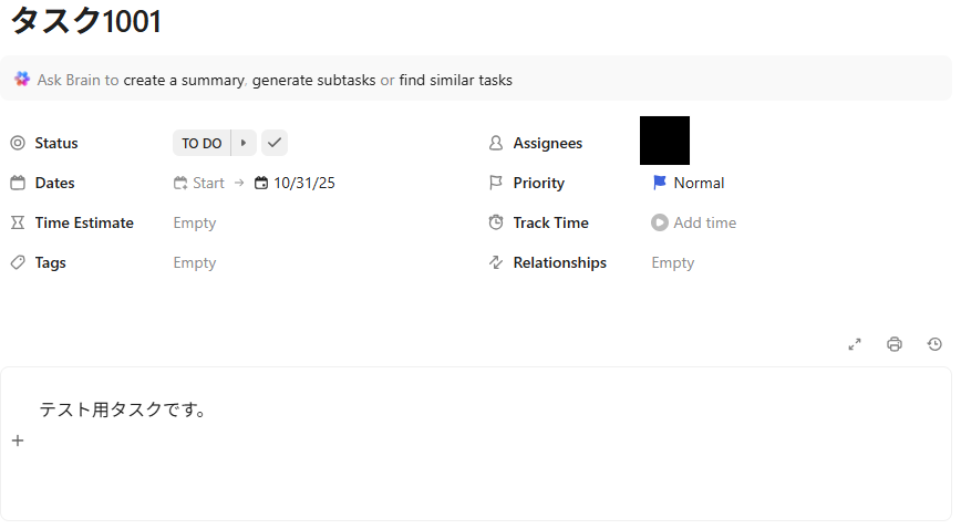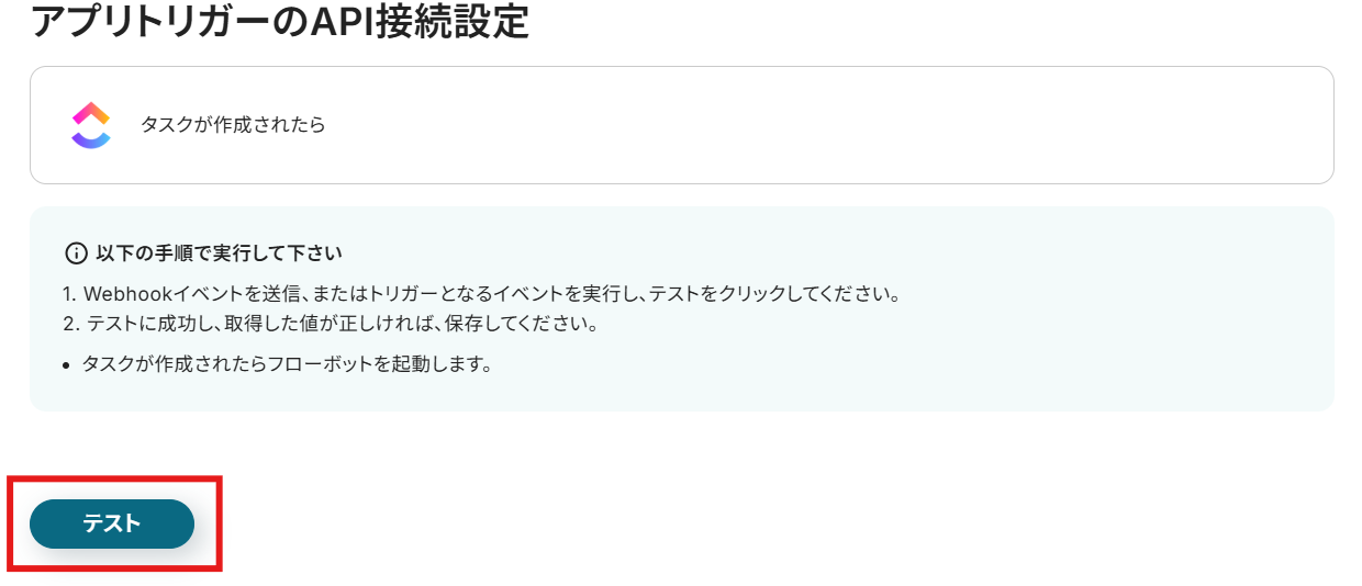 ClickUpでタスクを作成できたら、もう一度テストを行います。