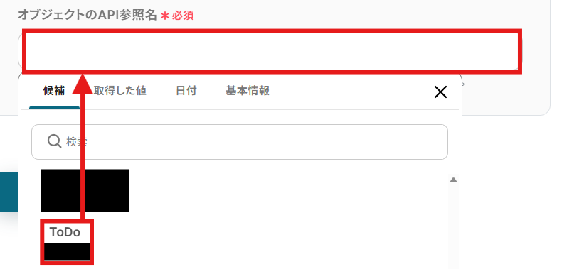 「オブジェクトのAPI参照名」を候補から選択します。