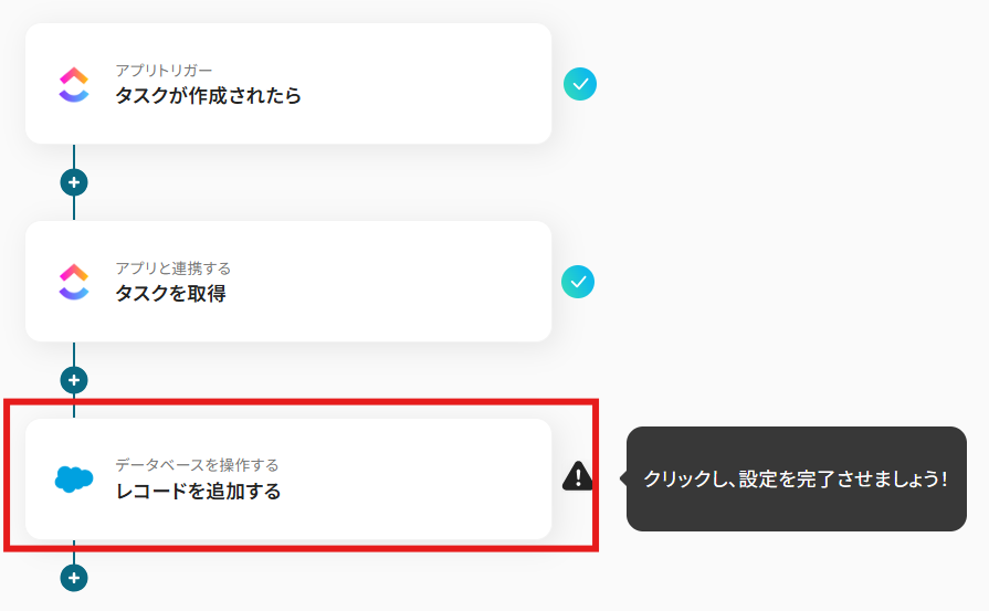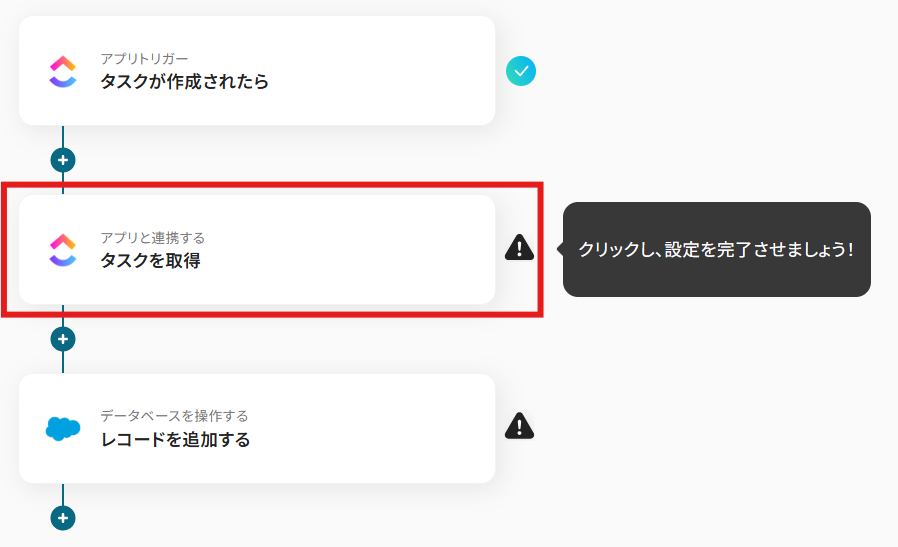 ClickUpでタスクが追加されたら、Salesforceにレコードを追加する