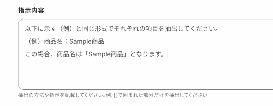 抽出されたデータが望んでいた形とは違う場合、「指示内容」という設定欄をご活用ください。