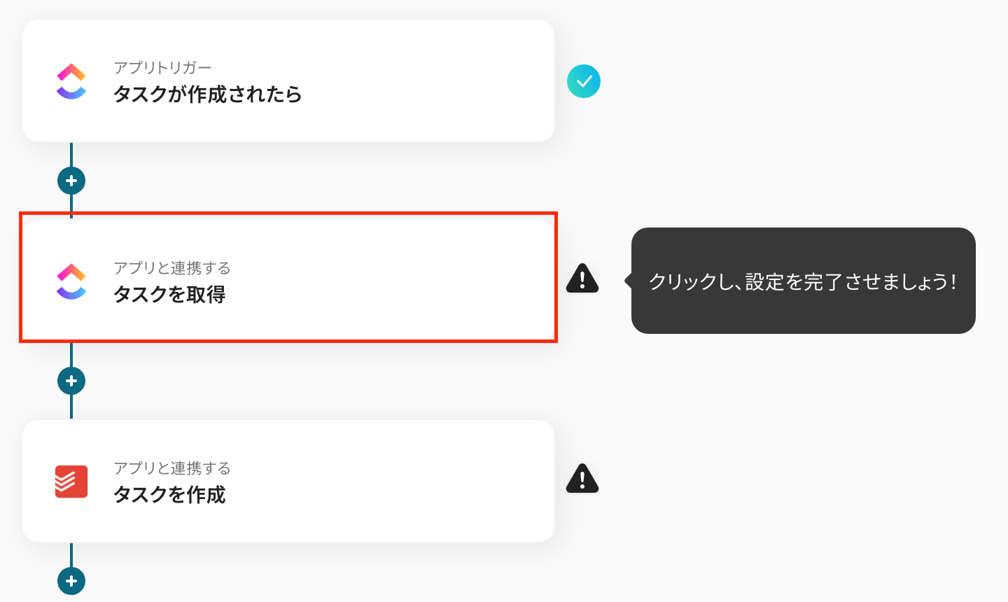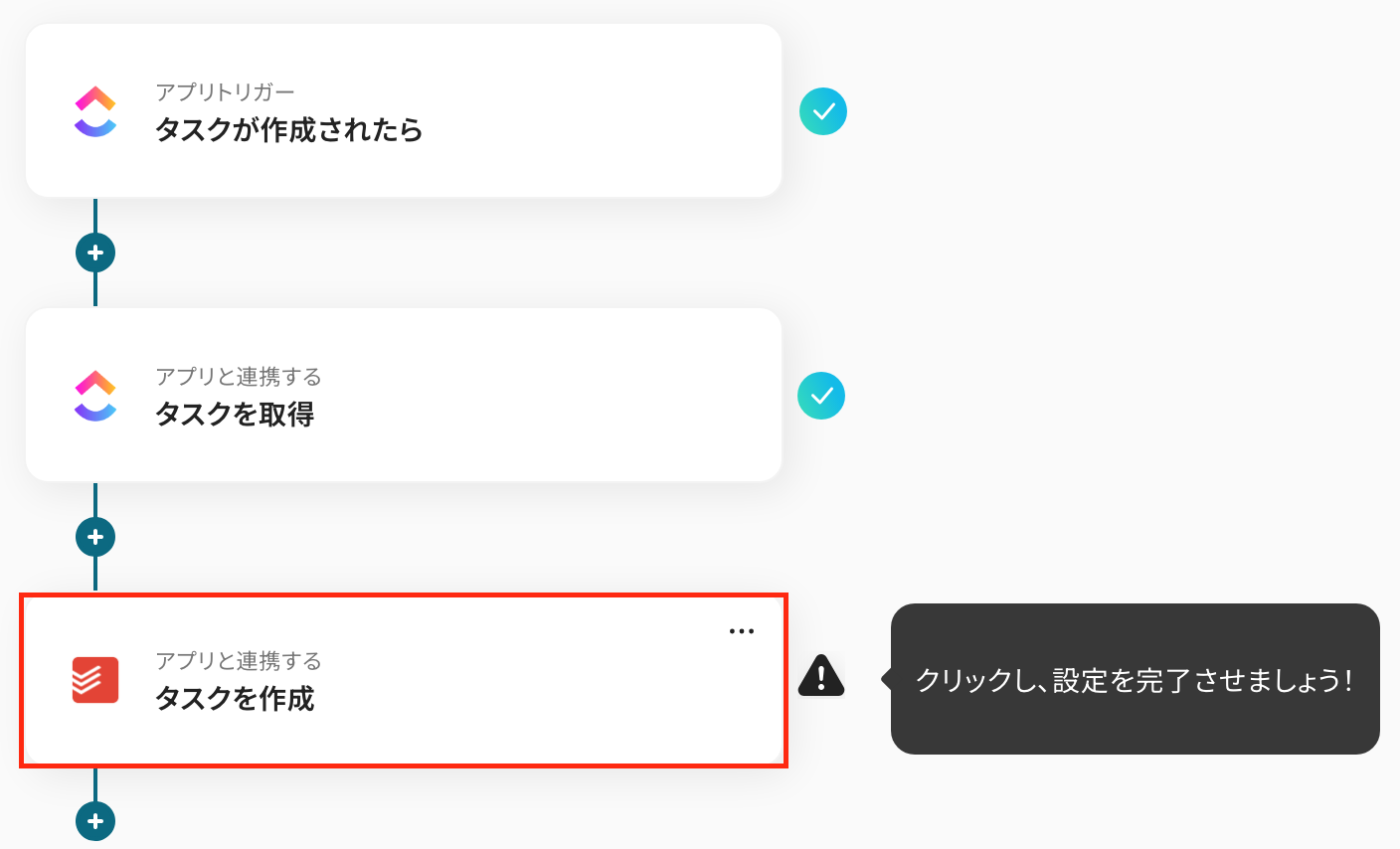 以上で、「ClickUpでタスクが作成されたら、Todoistにも追加する」フローの完了です。お疲れ様でした。