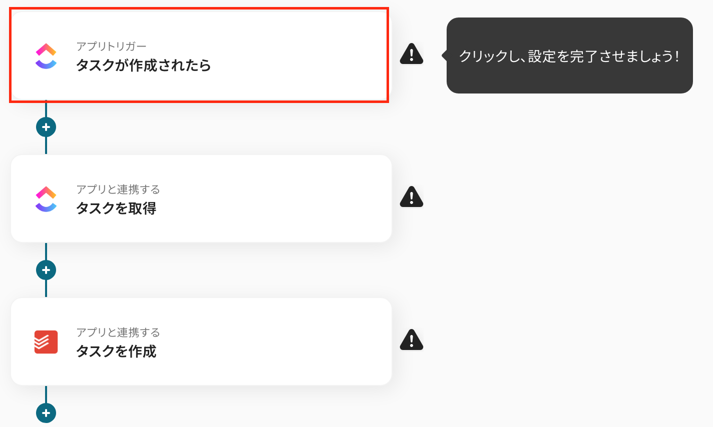 今回は「ClickUpでタスクが作成されたら、Todoistにも追加する」フローを作成していきます!