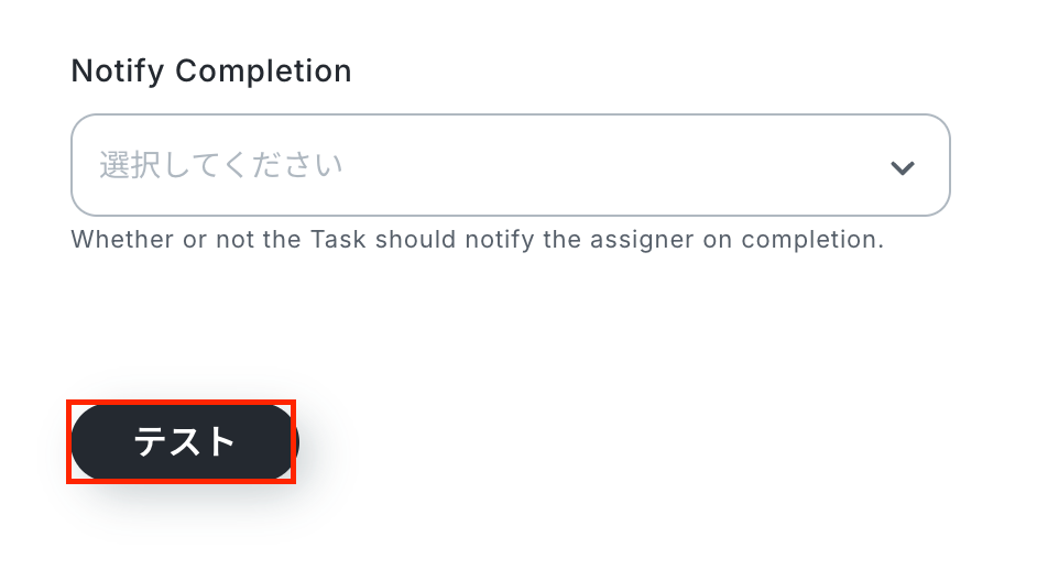 その他の項目もお好みで設定可能です。 注釈を参考に、必要に応じて設定してみてくださいね。 入力が完了したら「テスト」をクリックして、設定した内容でタスクが更新されるか確認しましょう。