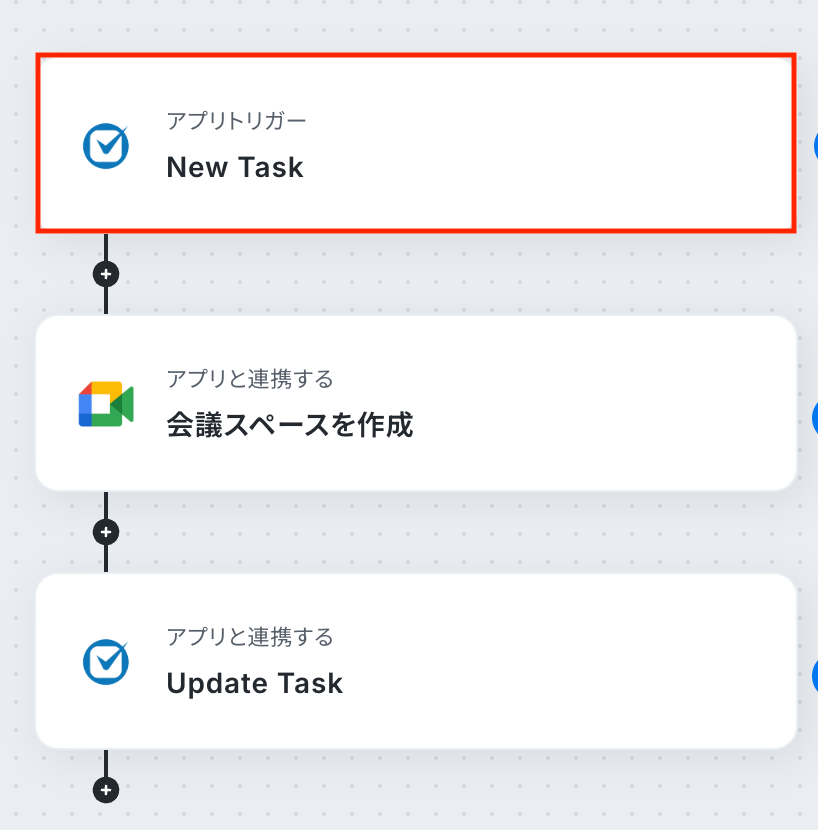 フローの作成方法 今回は、Clio ManageでTaskが作成されたらGoogle Meetでミーティングを作成してタスクを更新する フローを作成していきます! 作成の流れは大きく分けて以下です。