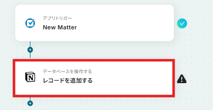 - 最後に、オペレーションでNotionの「レコードを追加する」アクションを設定し、トリガーで取得した情報を基にNotionのデータベースにレコードを追加します。