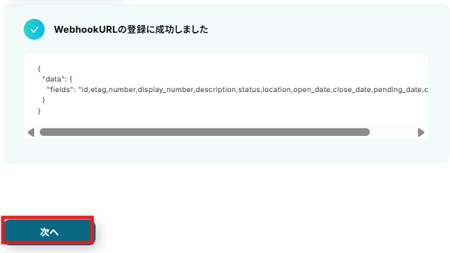 登録が完了すると以下のように表示されるので、「次へ」をクリック。