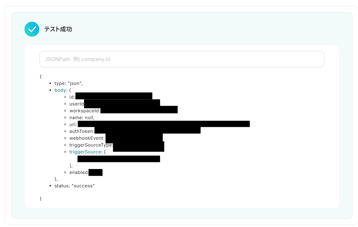 「Workspace ID」を設定できたら「テスト」を行いましょう。