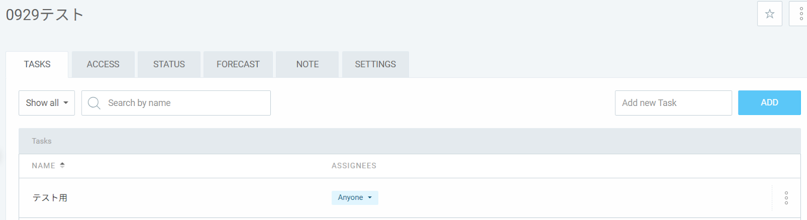 今回は例として、「0929テスト」というプロジェクトに「テスト用」というタスクを作成しました!