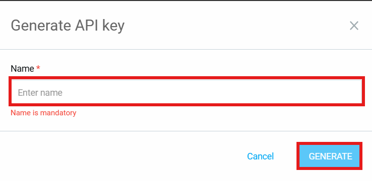 「Name」に任意の名前を入力し「GENERATE」を選択すると、API Keyを作成できます!