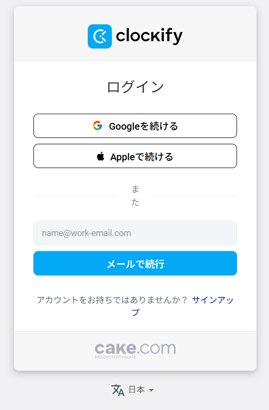 まずは、Clockifyに任意の方法でログインしましょう。