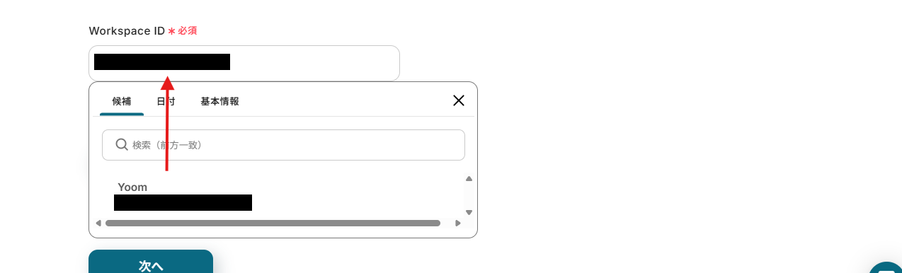 Workspace IDは、枠内をクリックして表示される候補から選択してください。