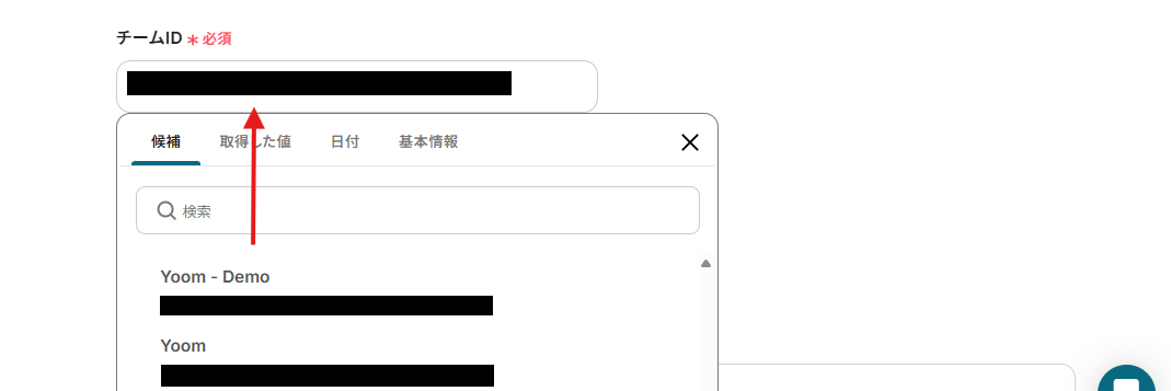 チームIDとチャネルIDは、枠内をクリックし表示された候補から選択します。