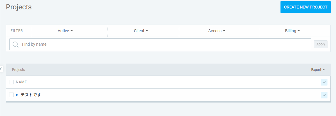 続いて、Webhookの動作テストを行います。Clockifyのページを開き、先ほど設定したWorkspaceに新しくプロジェクトを作成しましょう。 (架空の情報で問題ありません!)