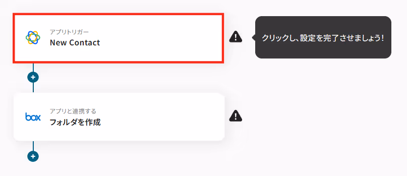 すべてのコンタクトではなく、重要な顧客や特定のフェーズにある顧客のフォルダだけを自動で作成したい場合に有効で、条件分岐の処理を含むことでより柔軟で実用的な自動化を実現します。