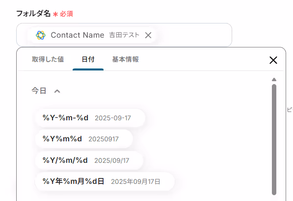 フォルダ名には以下のように取得した値からCloseの「Contacts Name」を選択しましょう。