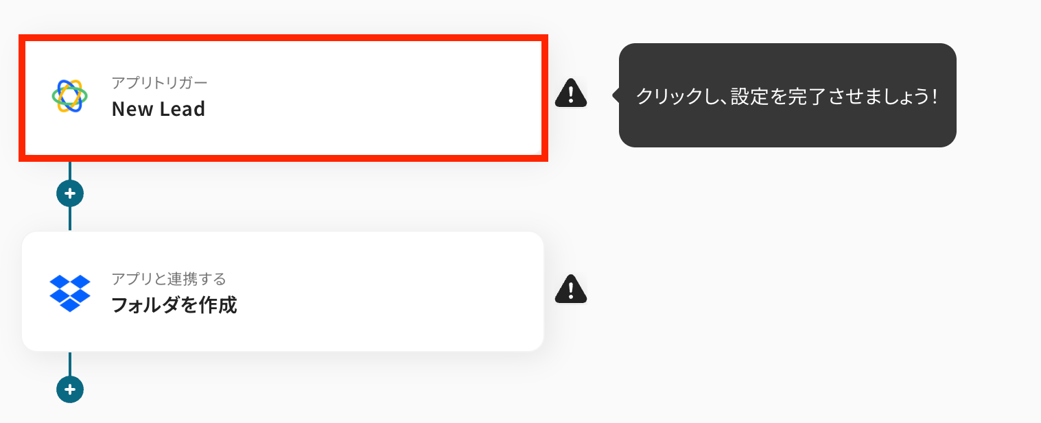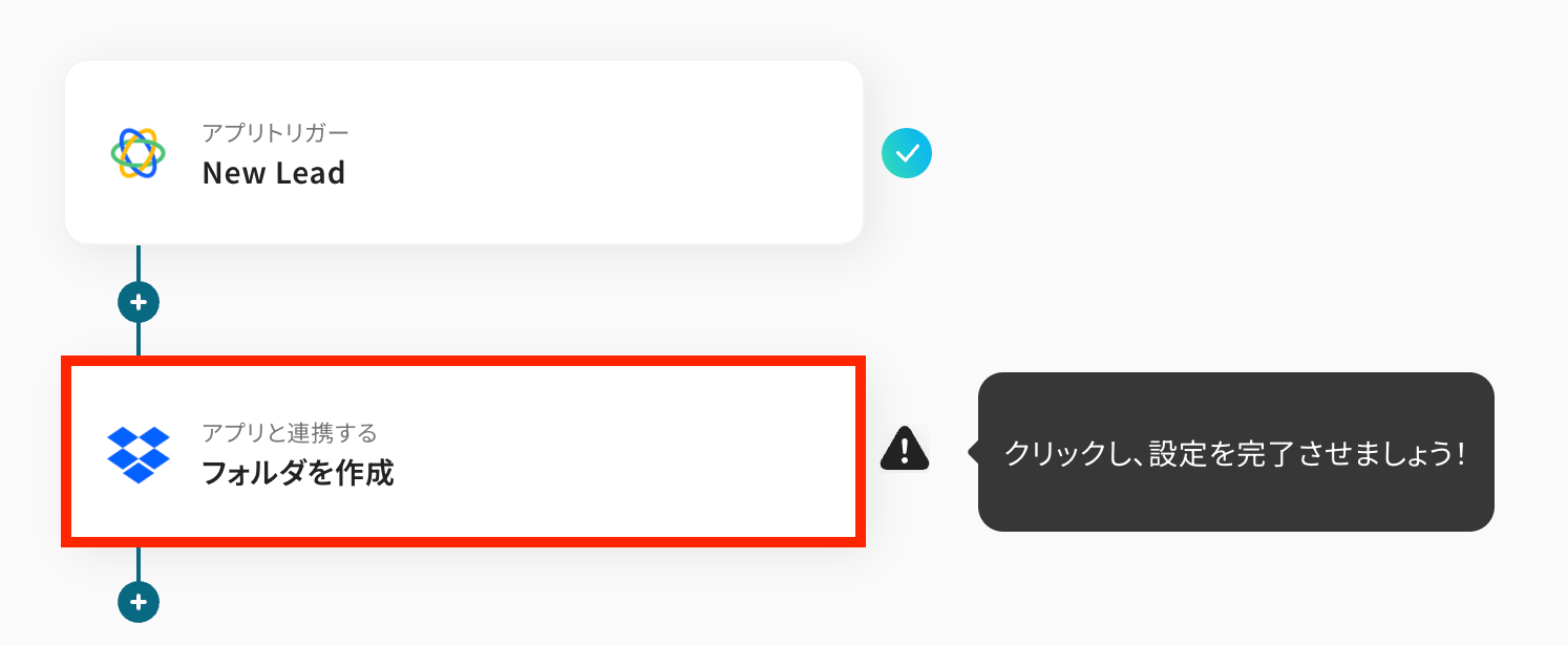 この分岐処理を含む連携によって、重要なリードや特定のフェーズに進んだリードのみを対象にフォルダを自動生成できるため、不要なフォルダの作成を防ぎ、Dropbox内をすっきりと整理された状態に保つことが可能です。