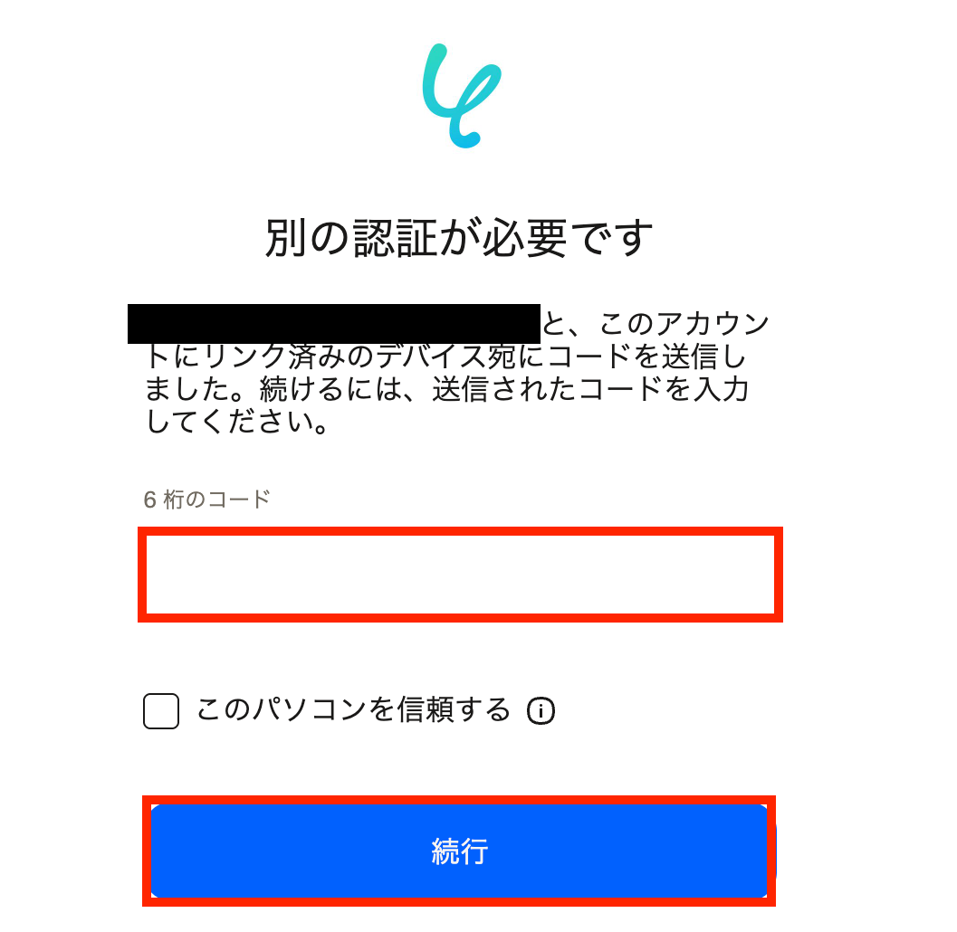 最後に承認コードの入力を求められるため、メールアドレスに届いた承認コードを入力したら「続行」をクリックします。