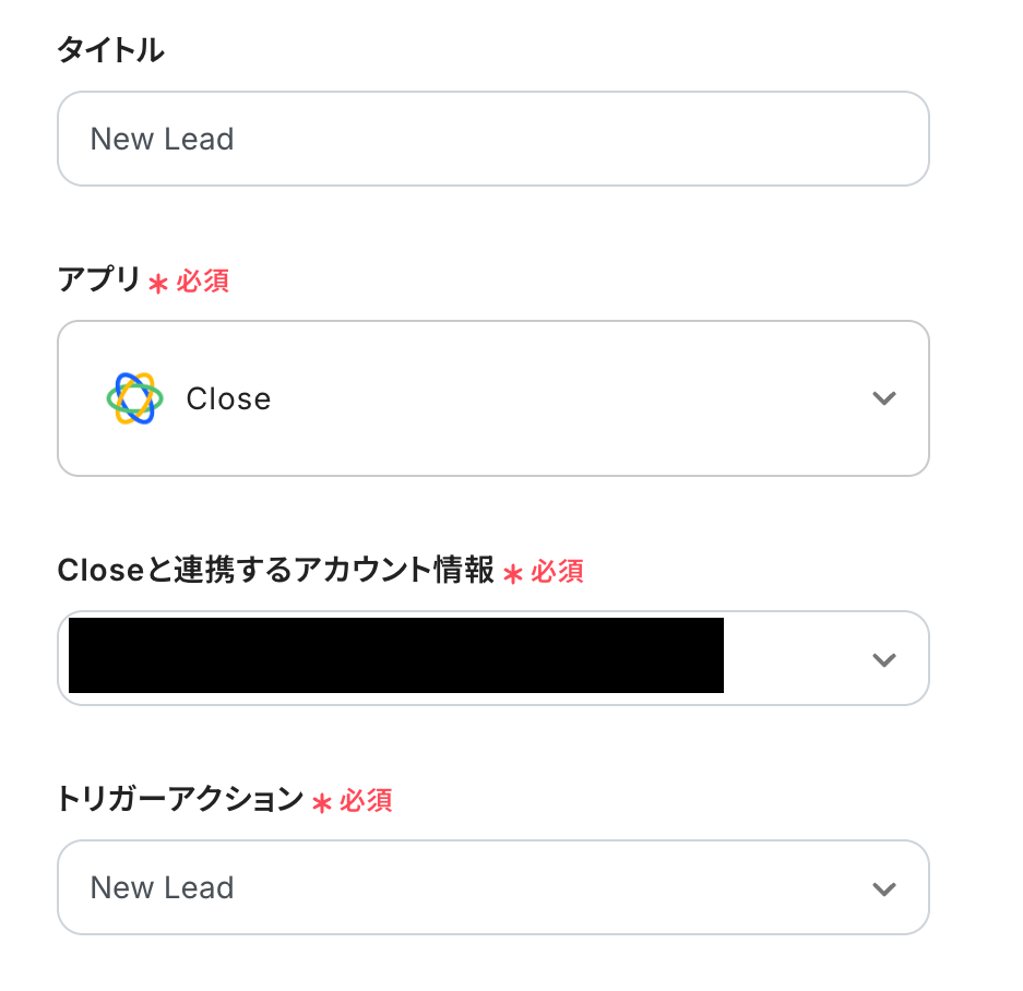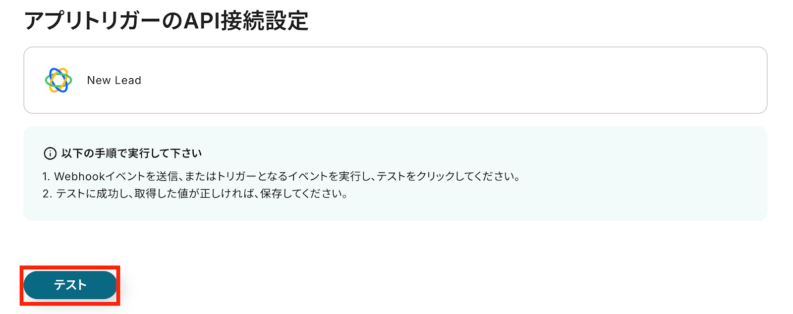 「トリガーアクション」:デフォルトで「New Lead」が選択されているので、そのままでOKです!