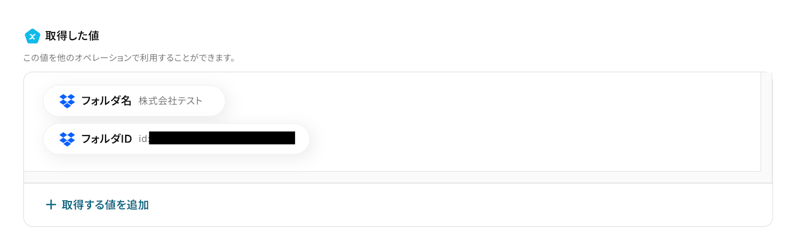 テストに成功して「取得した値」にDropboxのデータがアウトプットされたら「保存する」をクリックします。