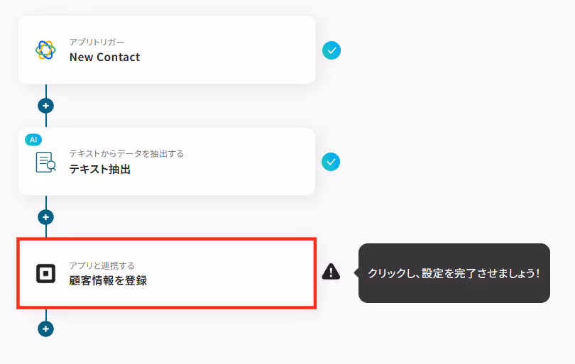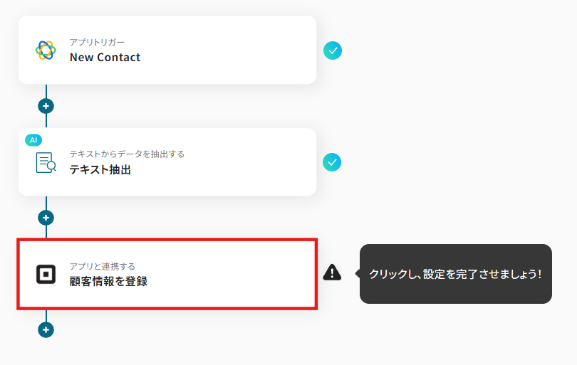 Closeで作成されたContactの情報や抽出した氏名を使って、Squareに顧客情報を登録するための設定を行います。