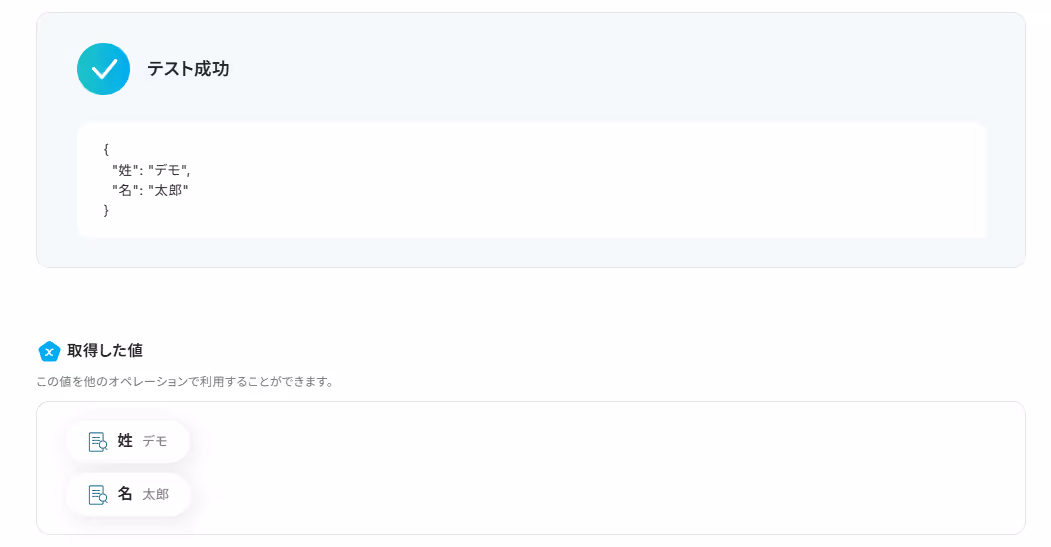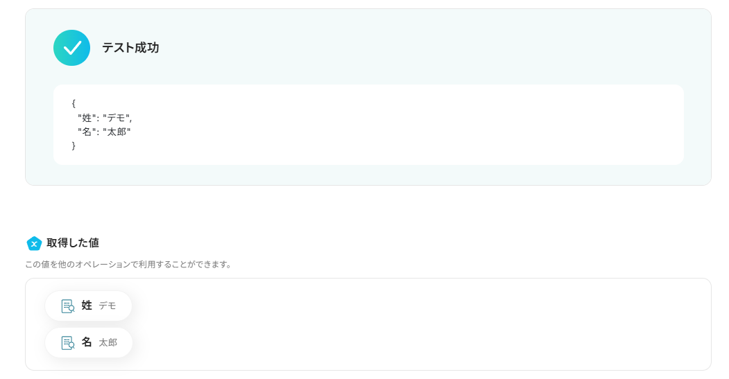 この後、この取得した値の内容を入力に使用することができます。