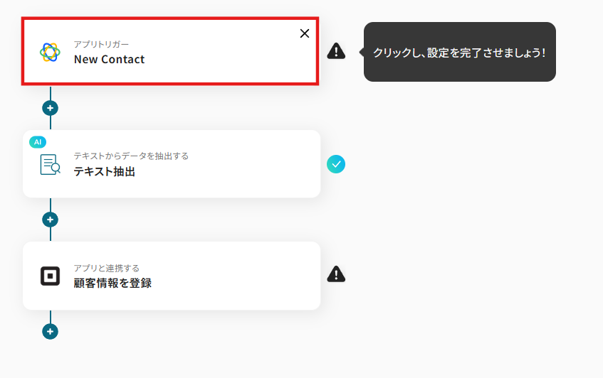 CloseでContactが作成されたことを自動化のトリガーにするための設定を行います。
