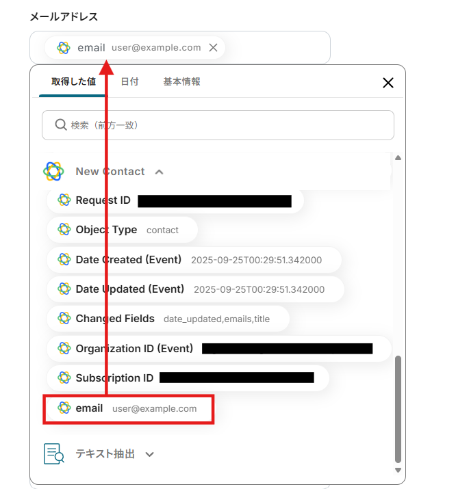 メールアドレスも以下のようにCloseから抽出した内容から選択し入力します。